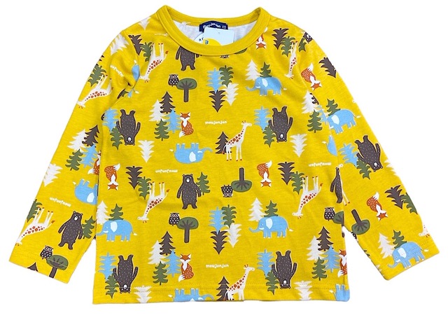 Moujonjon ムージョンジョン★動物と森柄★子供 長袖Tシャツ★良質素材 優しい天竺生地 吸水速乾 日本製