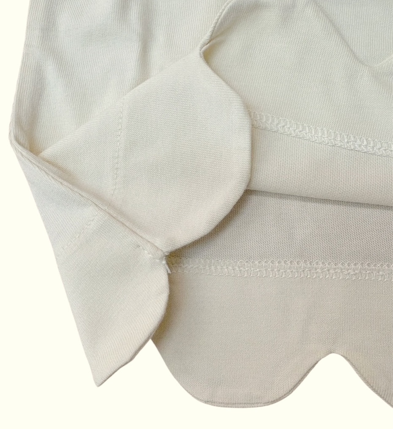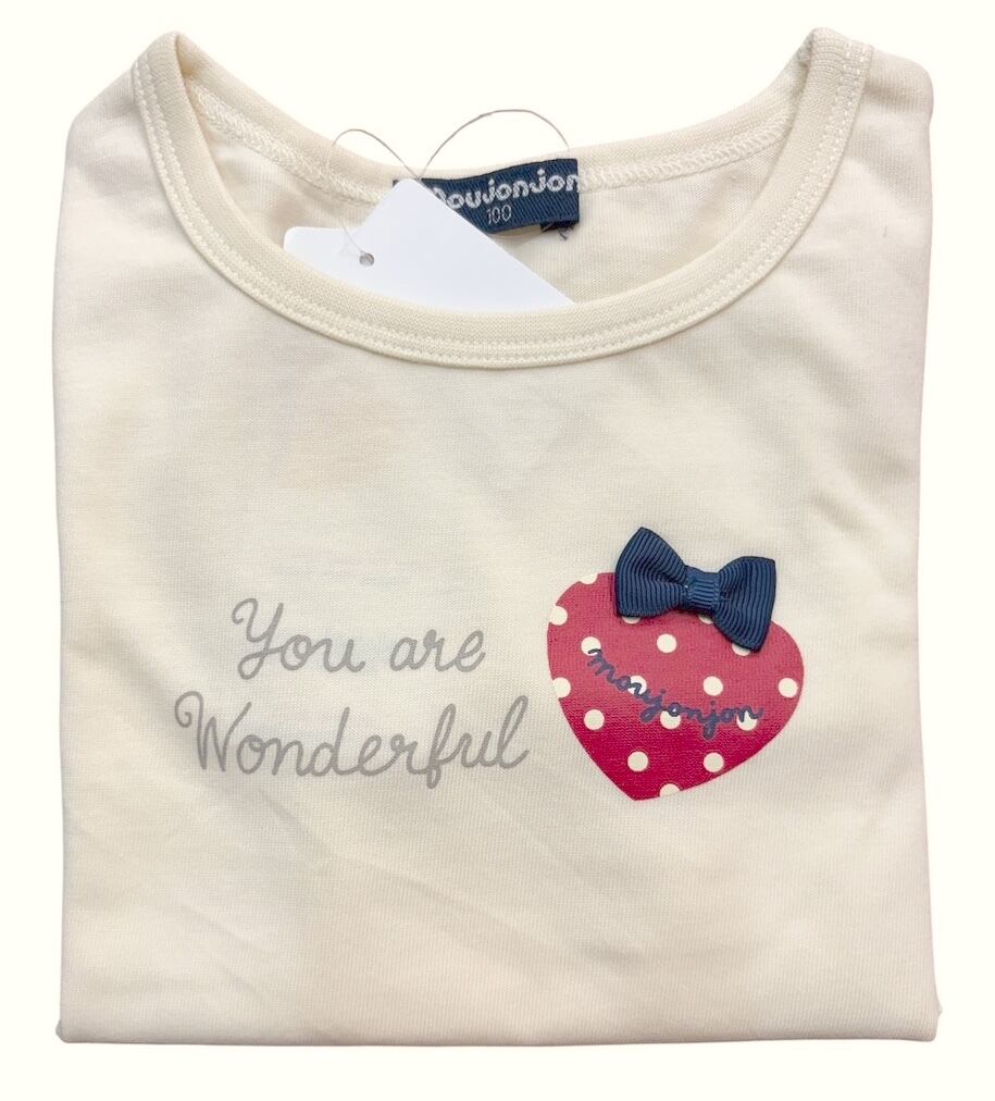 おなじみムージョンジョンの天竺生地の可愛い裾ペプナムの長袖Tシャツ。