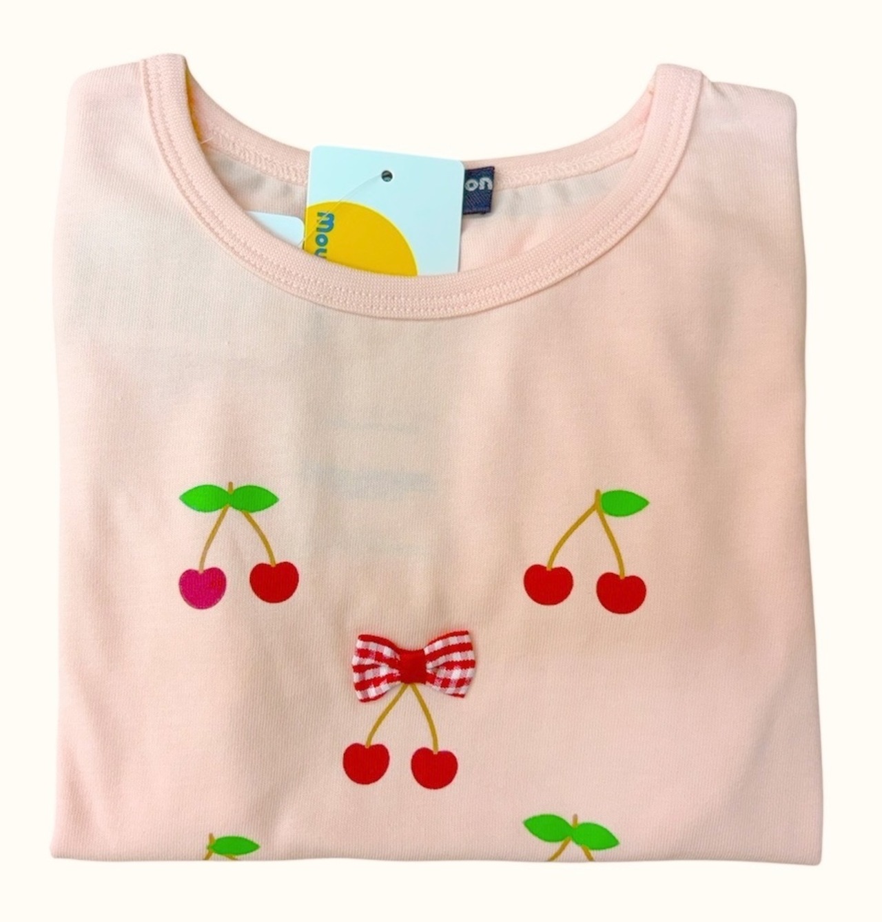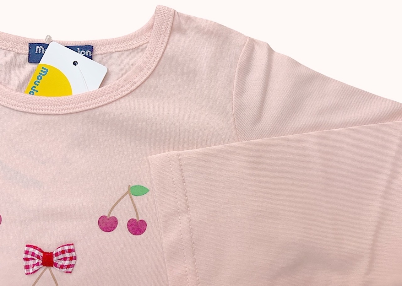 おなじみムージョンジョンの天竺生地の可愛い裾ペプナムの長袖Tシャツ。