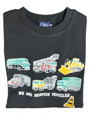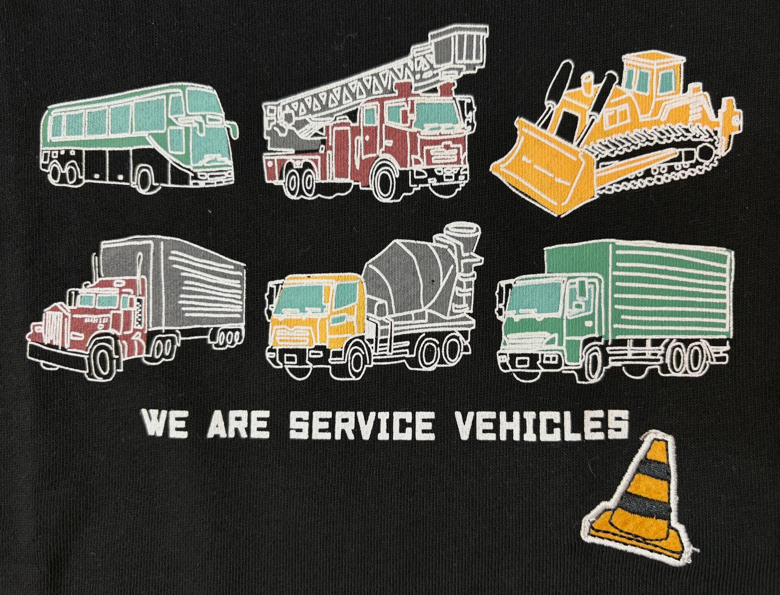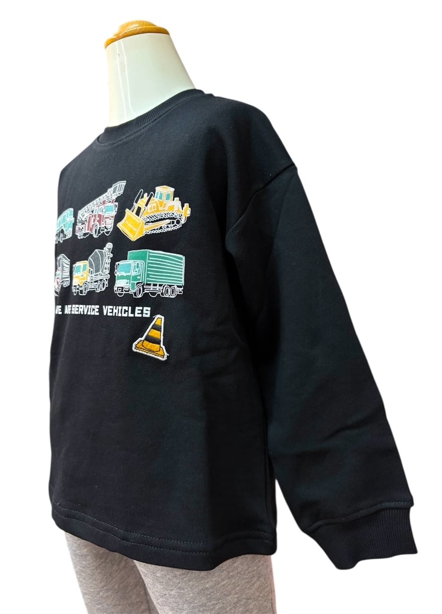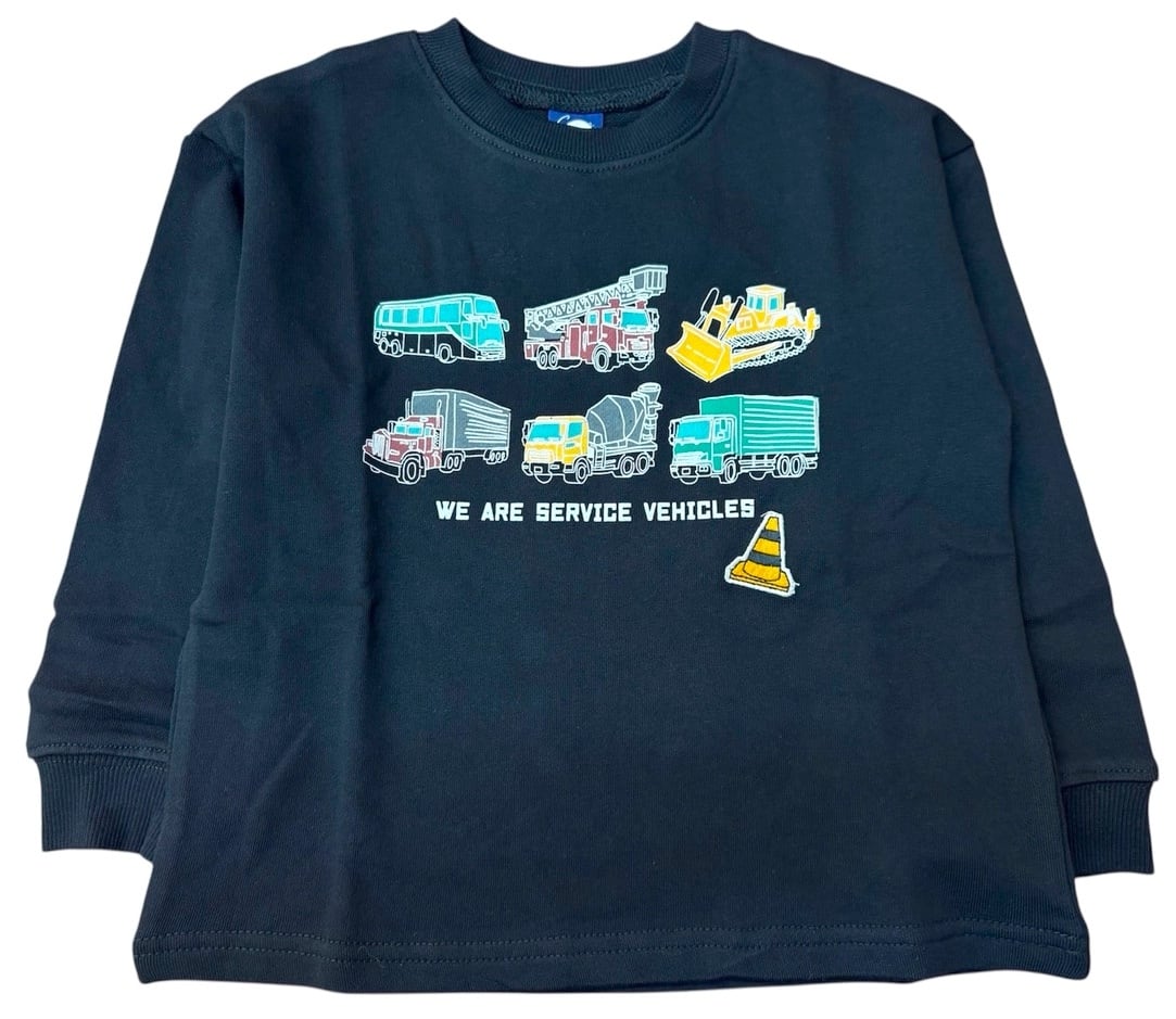 クレセントブランドの働く車プリントの裏毛トレーナーです。