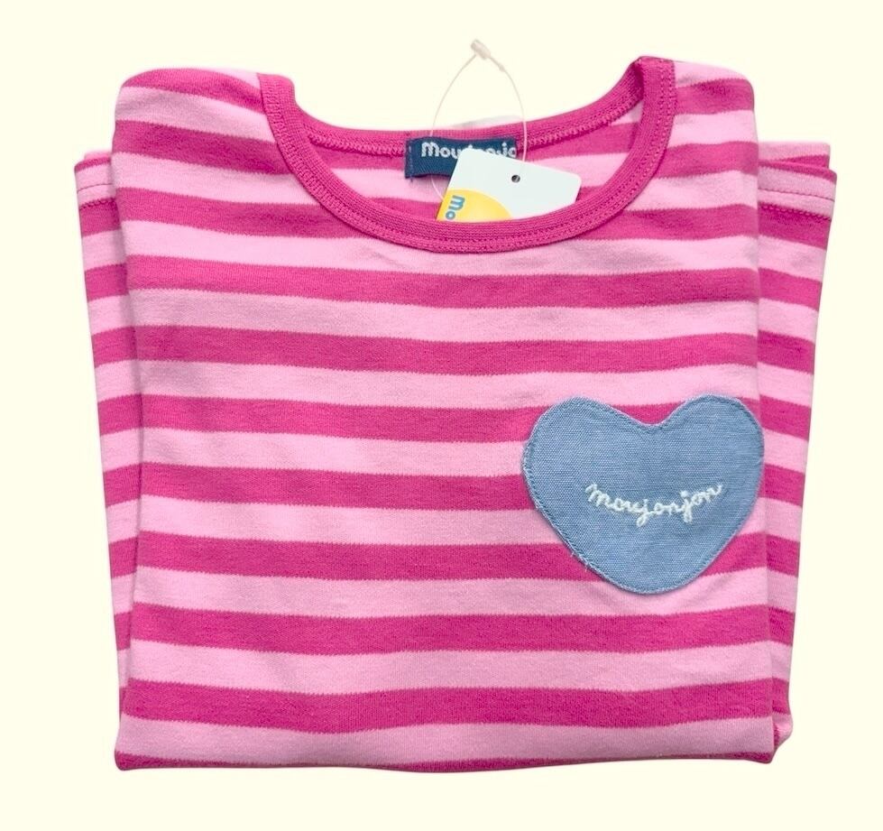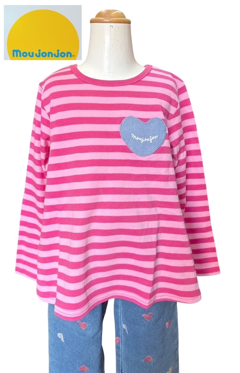 ムージョンジョンのスムース生地のボーダー柄の背面切り替えの長袖Tシャツ。