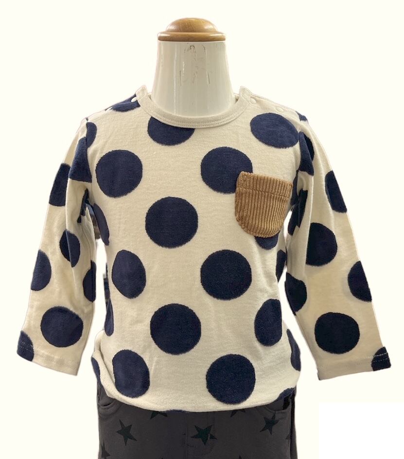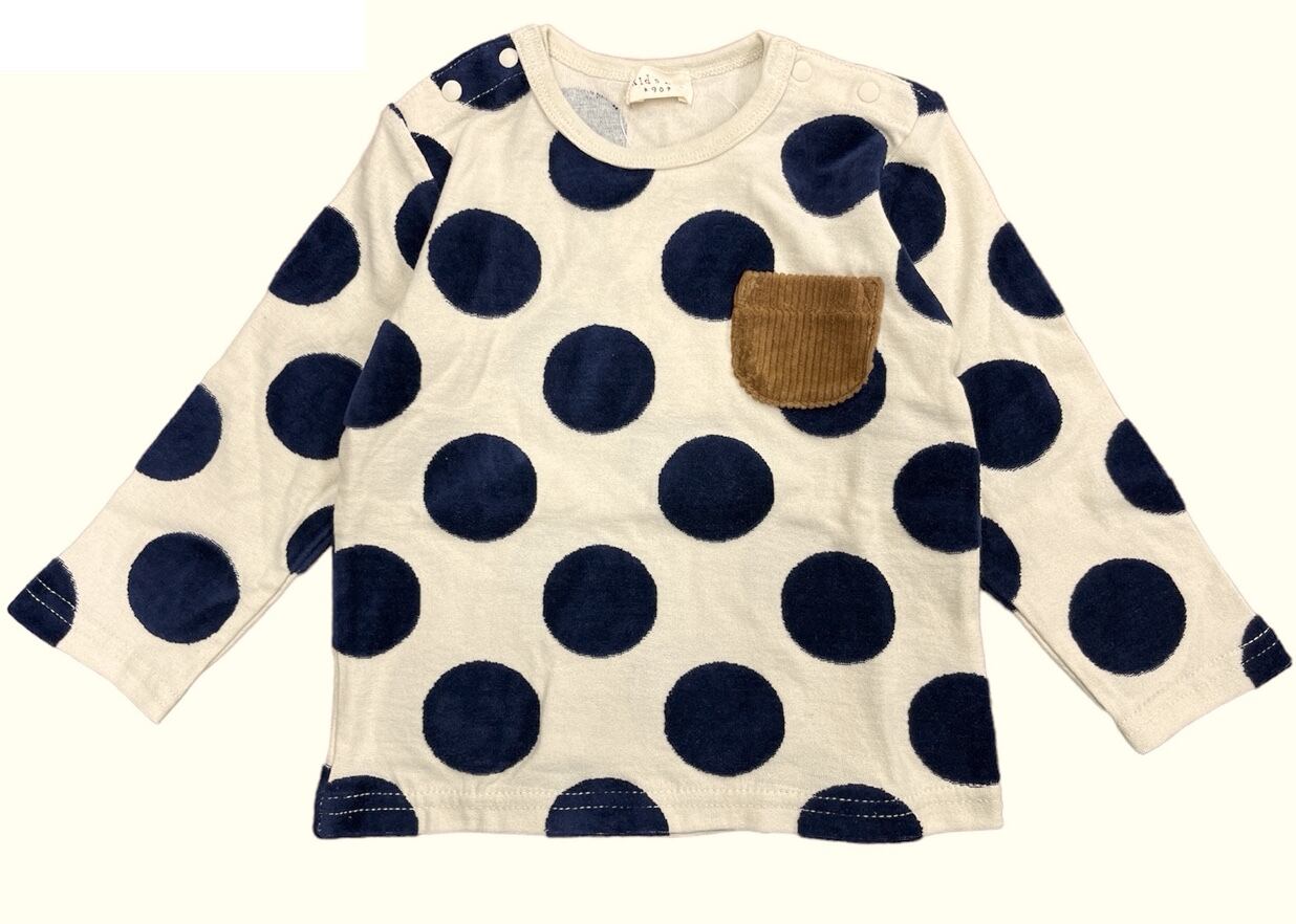 男の子も女の子にも可愛いドット柄長袖Tシャツです。