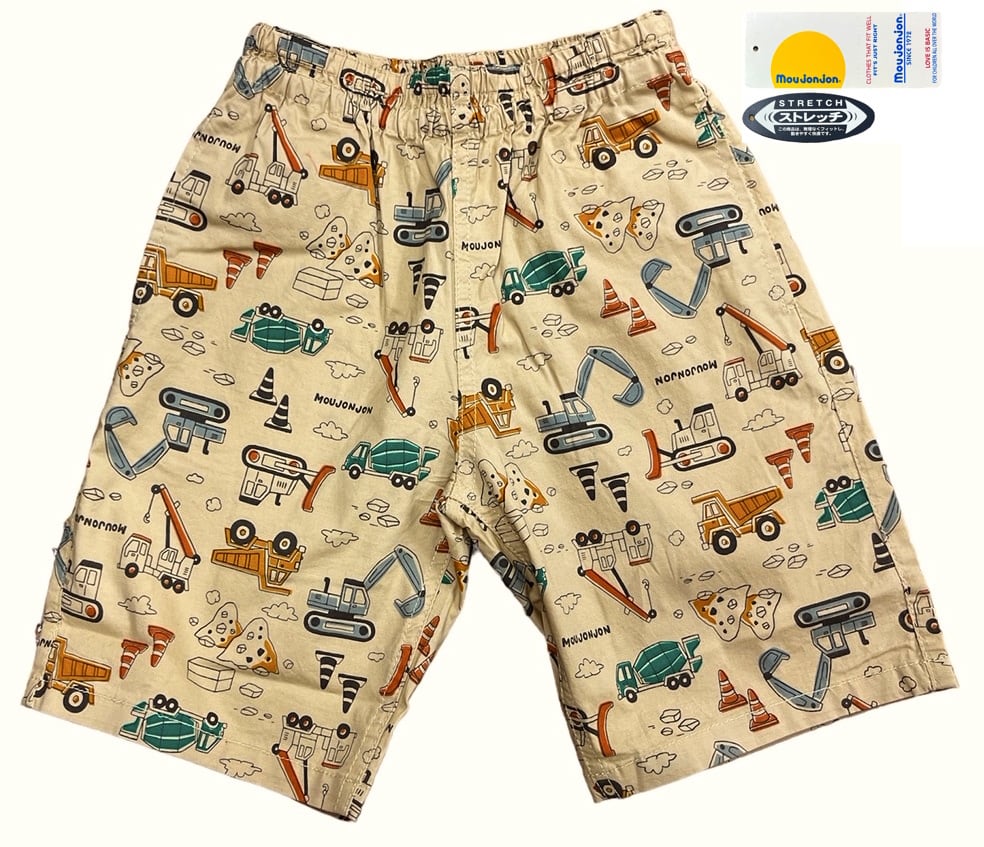 Moujonjon ムージョンジョン★ダンプカー ブルドーザー クレーン★ストレッチ 五分丈 ハーフパンツ★お出かけに 遊び着に | 子供服と猫雑貨のシッポナ ベビー・キッズウェア・子供服・雑貨の通販