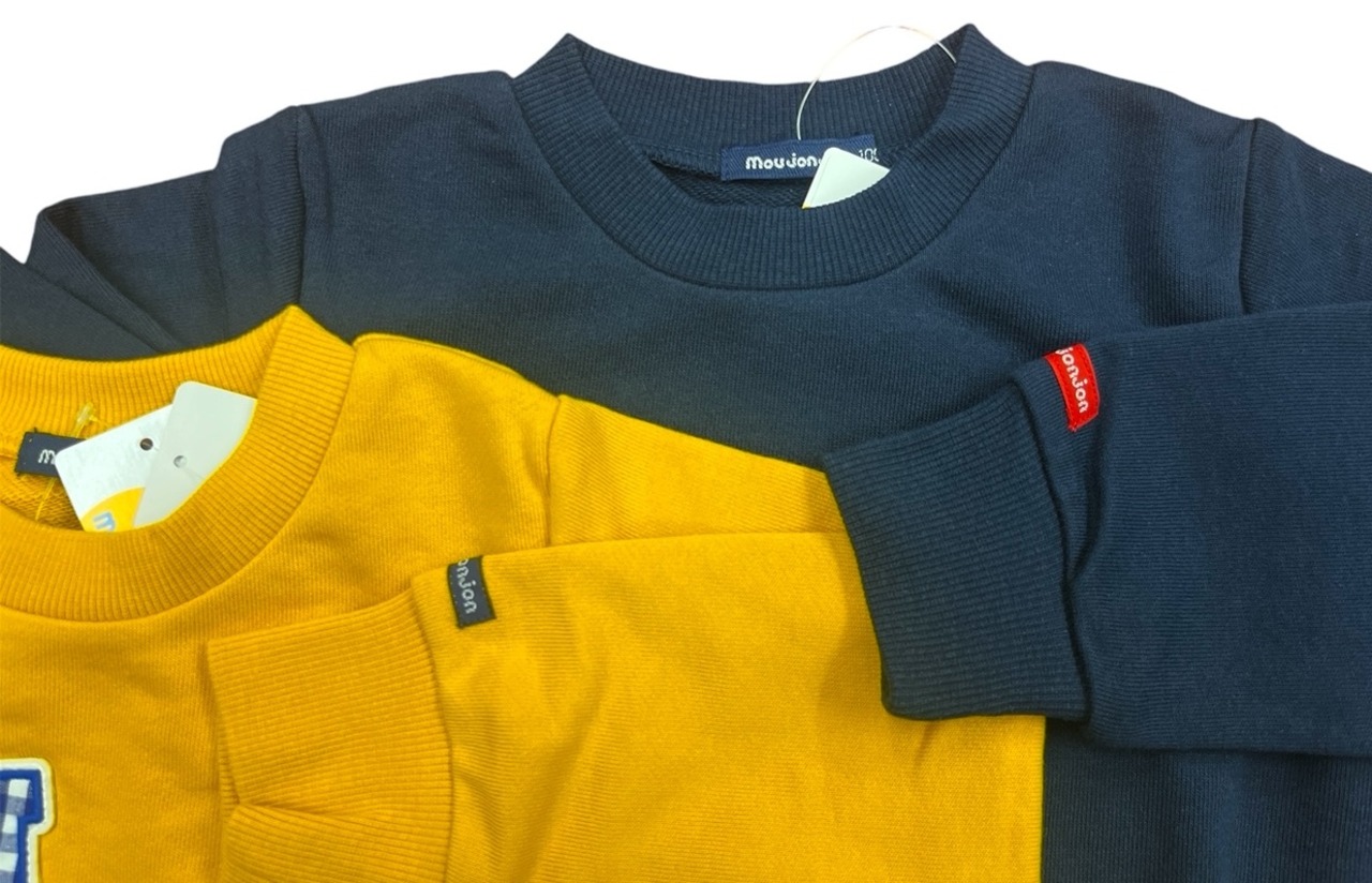 おなじみムージョンブランドの車のアップリケの裏毛トレーナーです。